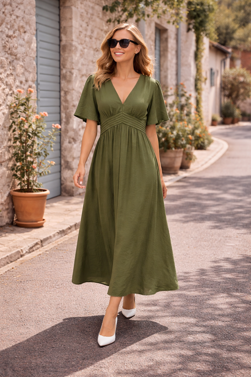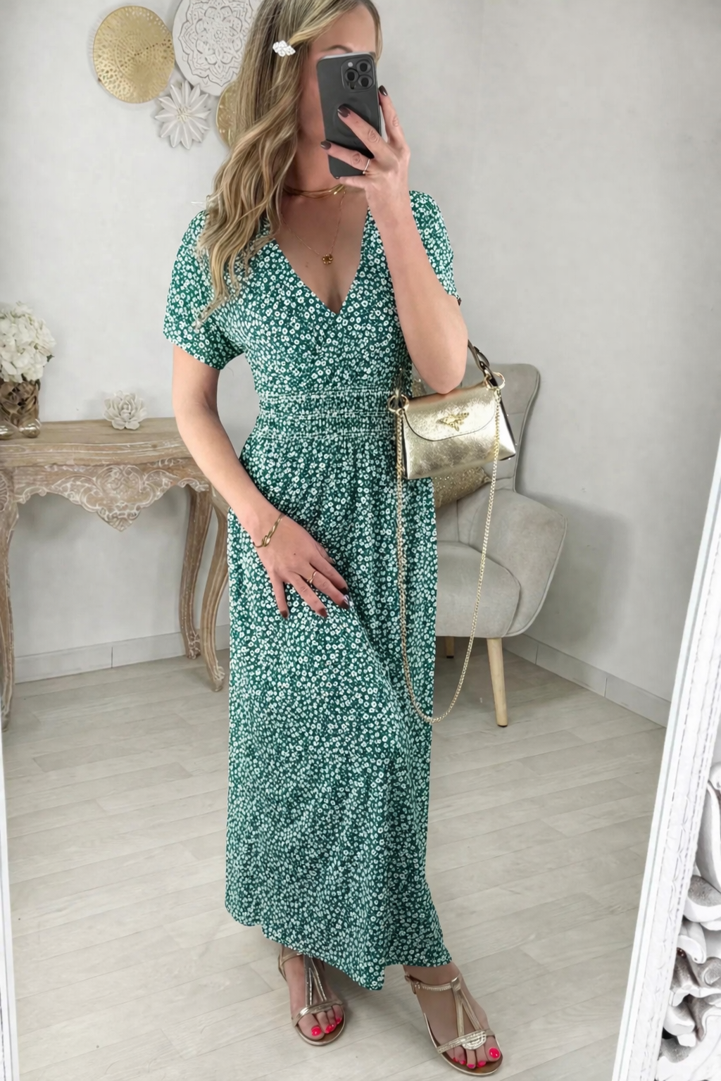 Robe longue Amarylis verte