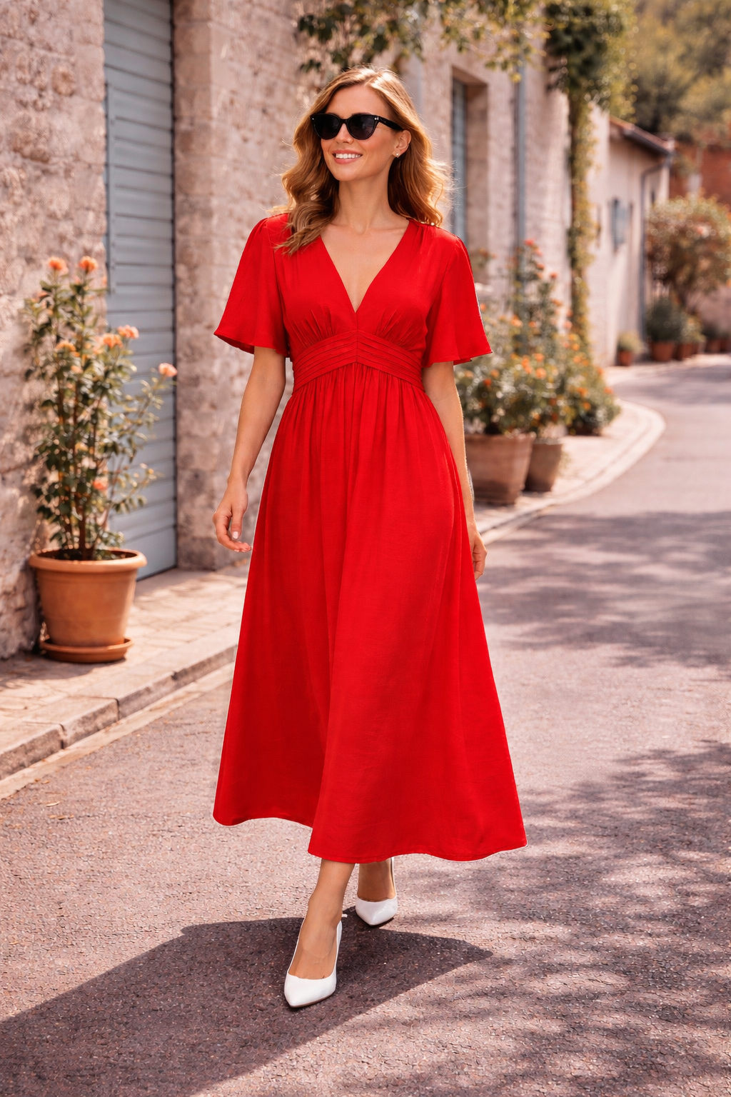Robe longue Amarylis rouge